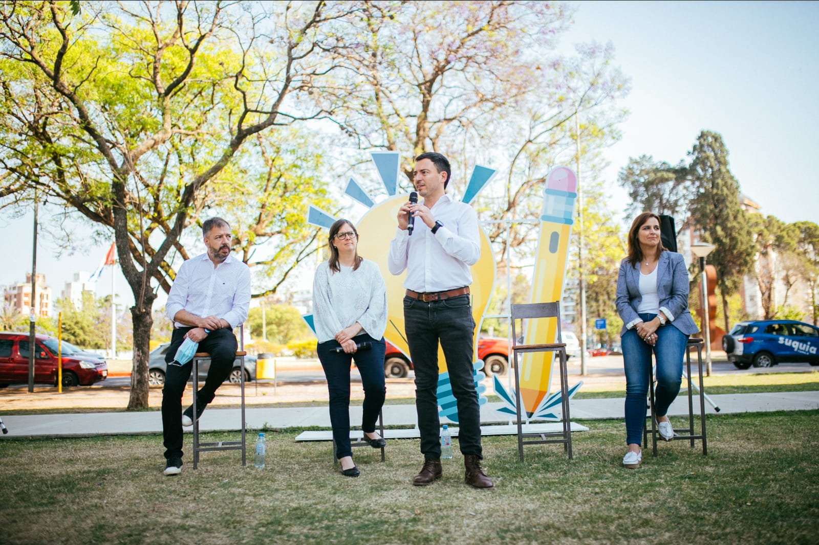 El candidato a Diputado Nacional, Rodrigo de Loredo, presentó este jueves el paquete de medidas que presentará en el Congreso Nacional en materia educativa, muchas de las cuales son diseñadas por la actual Diputada Nacional, Brenda Austin, que estuvo presente en la intervención.