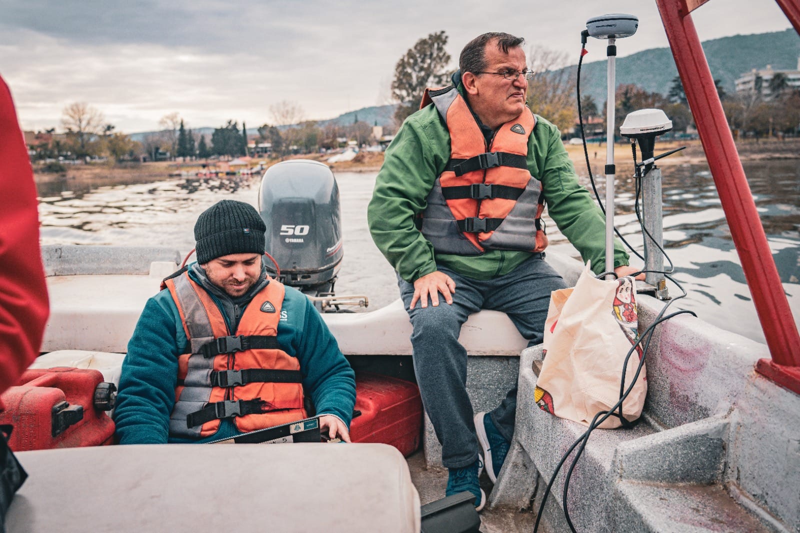 “Estamos haciendo un estudio batimétrico, un relevamiento del relieve del fondo del lago San Roque. El objetivo es evaluar si, a medida que pasa el tiempo, pierde o no capacidad de almacenamiento por el ingreso de sedimentos desde la cuenca”, explicó Marcelo García, profesor de la Facultad de Ciencias Exactas, Física y Naturales de la UNC e investigador del CONICET.