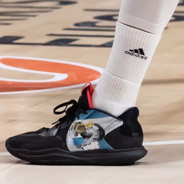 El base argentino aprovechó los festejos en el Estadio Monumental y se sumó a su manera usando unas zapatillas completamente negras para que resaltara, en uno de sus costados, la imagen de Lionel Messi besando la Copa del Mundo con una bandera argentina de fondo.
