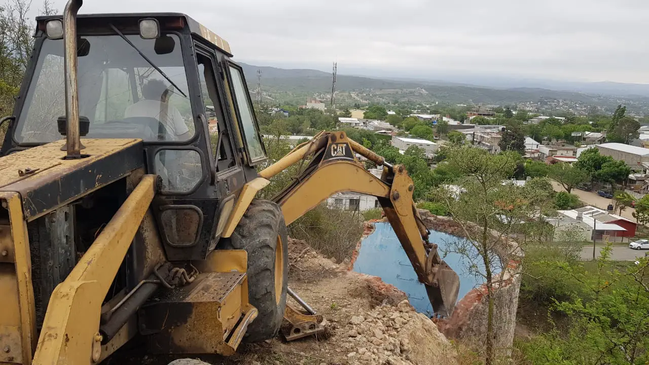 Finalmente este jueves terminaron con la demolición del tanque ubicado dentro del Área Protegida de Villa Carlos Paz, en el predio de la excantera municipal.