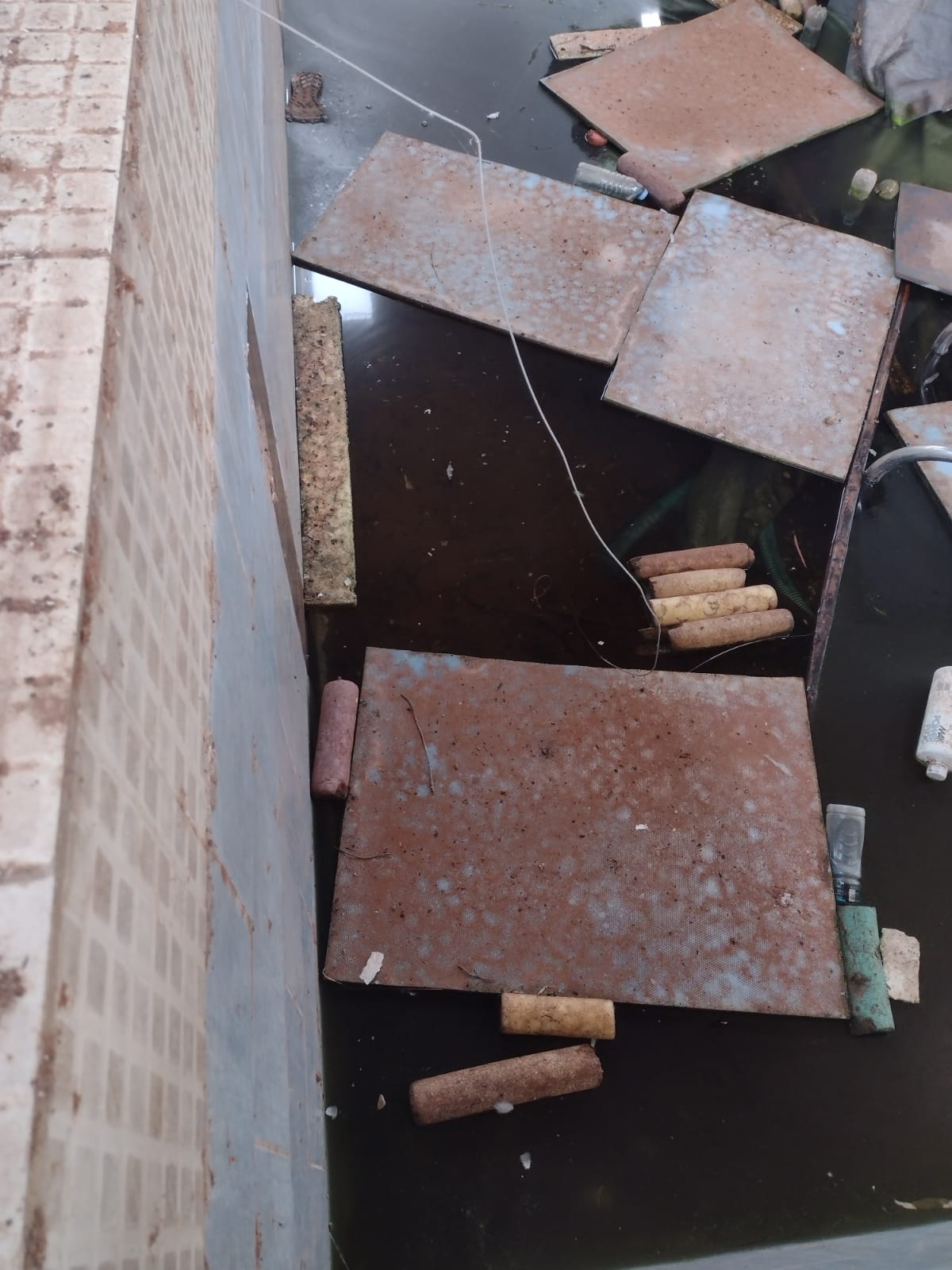 Según informaron a Carlos Paz Vivo! el agua de la pileta está podrida y estancada, efectuaron la denuncia al municipio, se quejaron con los propietarios, pero «nadie hace nada al respecto».