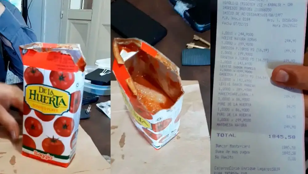 Adrián y Victoria, vecinos de la localidad La Cruz, en el valle de Calamuchita, estaban cocinando cuando intentaron ponerle puré de tomate a la preparación. Los intentos fueron en vano ya que este no salía. Así fue como al cortar la parte superior del producto, pudieron ver que adentro había una toalla femenina.