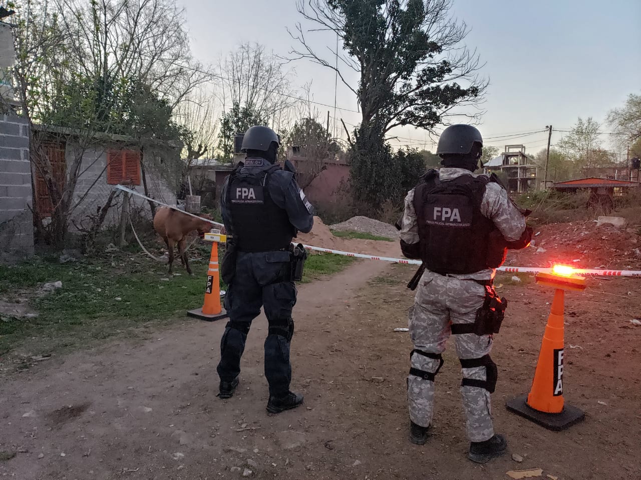 Los allanamientos se desarrollaron sobre calles Tokyo s/n y Cervantes al 200 (2) de barrio Villa Oviedo de la ciudad del Tajamar.