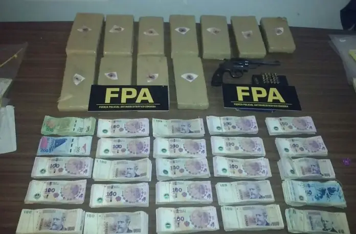 En el lugar se secuestraron 11 ladrillos de marihuana conteniendo un total de 10 kilos 712 gramos, 238 gramos de cocaína, dinero ($ 259.171), dos vehículos (camioneta Ford Ranger y Renault Kangoo) y un revolver cal 38 (con 28 cartuchos), entre otros elementos presuntamente relacionados al narcomenudeo.