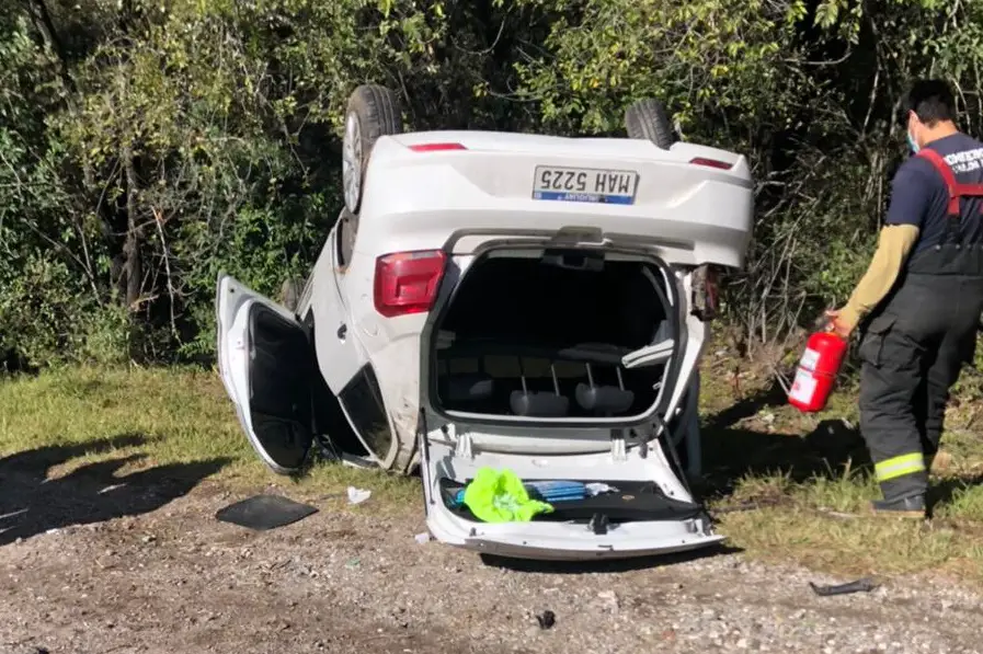 Por motivos que se desconocen, el auto en el que se trasladaban dio varios tumbos para quedar dado vuelta a la vera de la colectora.