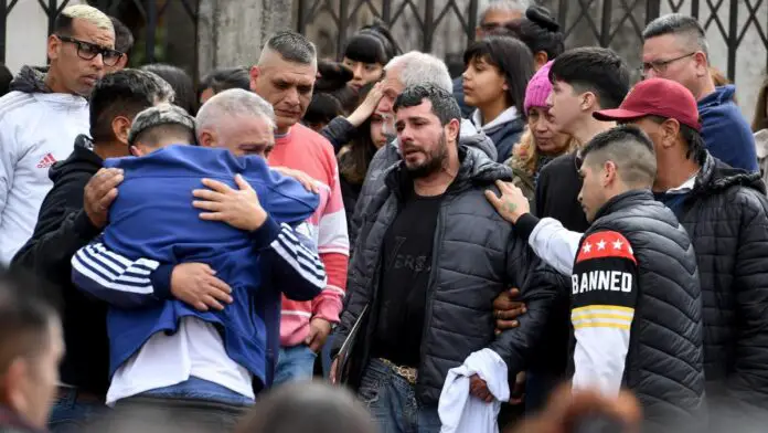 Entre aplausos y pedidos de justicia de familiares, vecinos y compañeros, el féretro con los restos de la víctima fue retirado a las 12.50 de la vivienda se su papá, ubicada en la calle Itapirú al 4300, de Lanús, donde se realizó el velatorio.