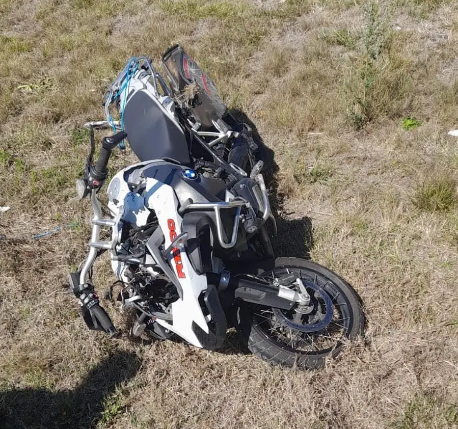 Este viernes por la mañana, alrededor de las 10 hs, un hombre de 47 años de edad que conducía una motocicleta marca BMW modelo R1200GS de color blanca, despistó con su moto por problemas en una rueda. Afortunadamente no sufrió heridas de gravedad.