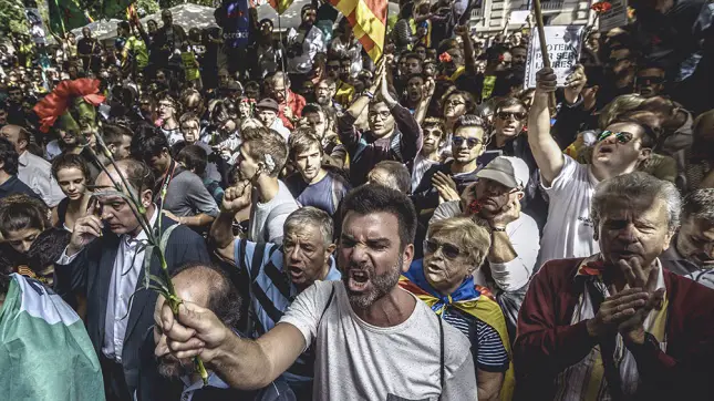 El golpe policial tuvo lugar a 10 días de la fecha marcada para el referéndum prohibido por el Tribunal Constitucional y fue considerado todo un acto de “agresión” del Ejecutivo central español del conservador Mariano Rajoy, al que el presidente catalán, Carles Puidemont, acusó de haber traspasado la “linea roja” que separaba a España de un “régimen autoritario y represivo”. “La desobediencia de la ley por parte de un poder público es todo lo contrario a la democracia”, respondió el presidente del gobierno español Rajoy, quien reiteró que “hará cumplir la ley”, por lo que recomendó a los independentistas catalanes que “cesen de sus actividades ilegales” porque el referéndum “ya no es más que una quimera imposible”.