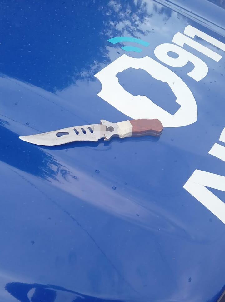 Al intentar controlarlo, el joven se dio a la fuga e ingresó a un domicilio, donde fue finalmente aprehendido. El dueño de casa relató luego que el menor había descartado de una cuchilla de 25 cm en el lugar.