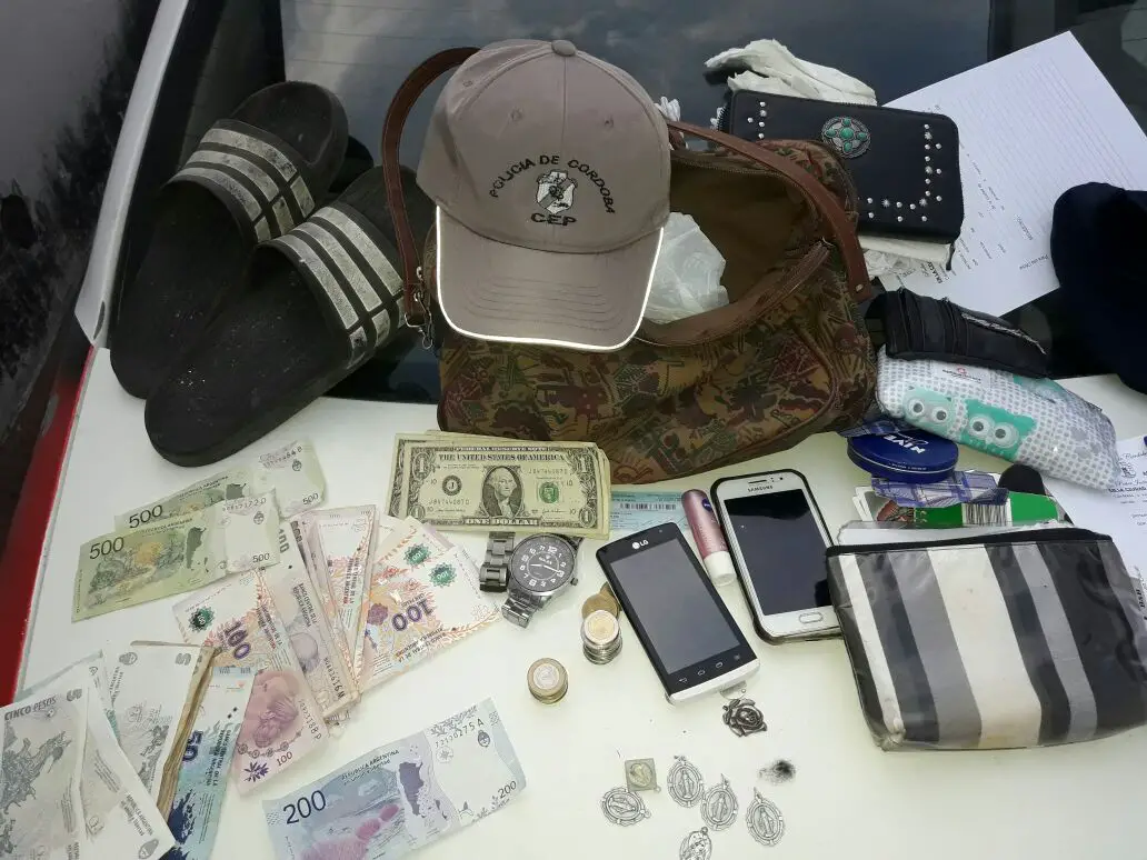 Se secuestró en el operativo 2 celulares, 1 billeteras, 2 relojes, 4 mil pesos, medallitas, un partatarjetas y un par de ojotas.