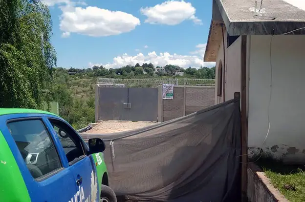 El lugar cuenta con un cerco perimetral de paredes de hormigón y un portón cerrado metálico, arriba tiene un cerco de alambre de púas.