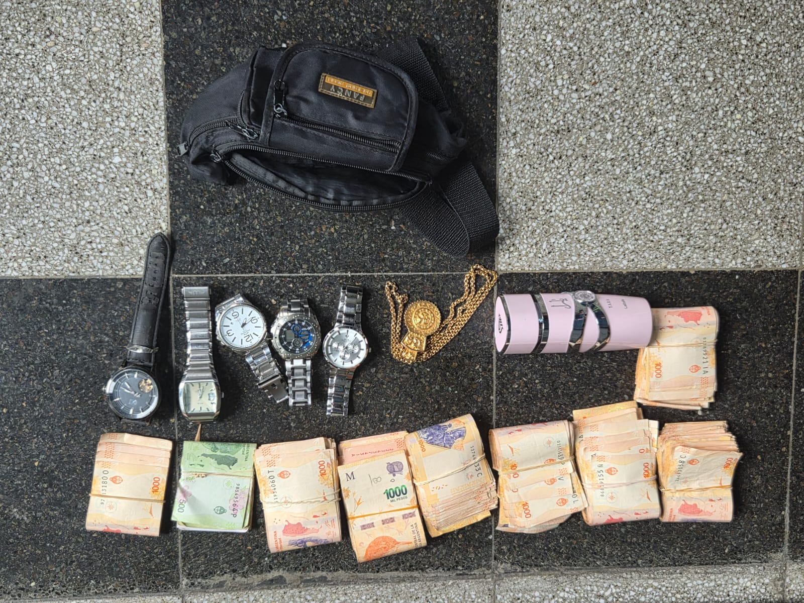El procedimiento se llevó a cabo cerca del mediodía, cuando personal policial detuvo a los sospechosos para una verificación de rutina. Al notar su actitud sospechosa, procedieron a requisarlos, hallando la importante suma de dinero y los objetos de valor.