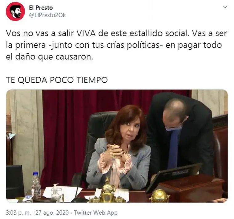 El youtuber está acusado de amenazar de muerte a la vicepresidenta Cristina Fernández.