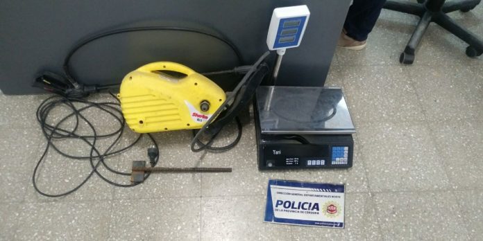 En consecuencia, los uniformados procedieron a controlar a las personas, quienes poseían una balanza digital y una hidrolavadora extraídas del interior del local.