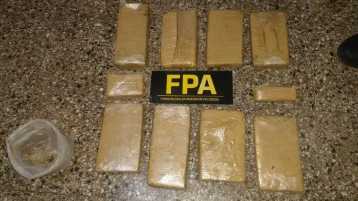 Según informaron desde la Fuerza, tras intensos registros en todos los espacios de la vivienda, lograron incautar 8 ladrillos y dos trozos pequeños de marihuana, dinero y elementos relacionados a la actividad ilícita.