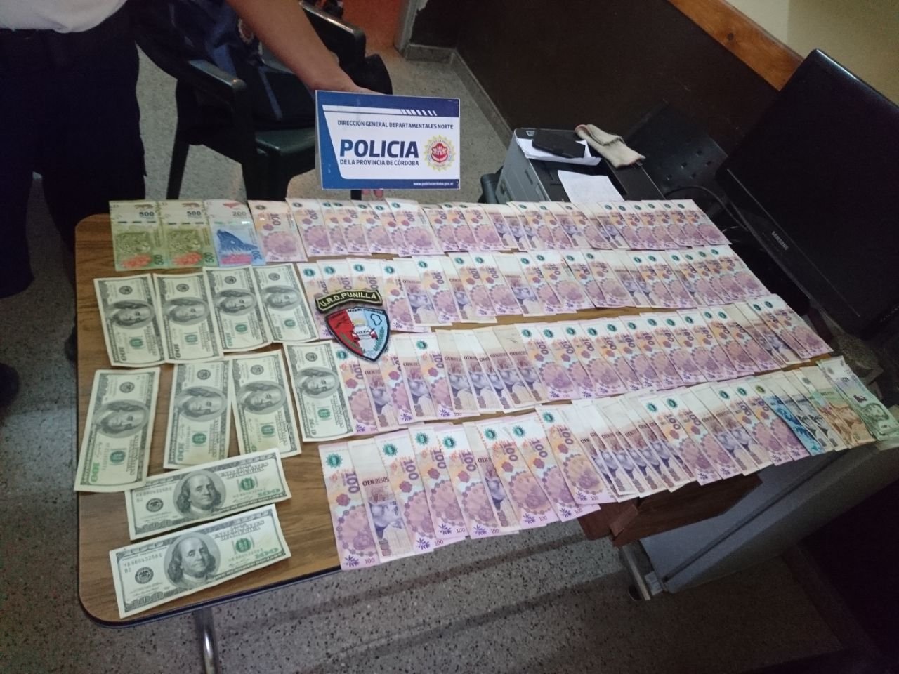 Por tal motivo, los uniformados procedieron a controlar a la persona, el cual tenía en su poder una suma de 1000 dólares. Pero ello no fue todo, porque del interior del vehículo en el que se trasladaba, secuestraron una suma de 10900 pesos que estaban escondidos adentro de un guante que estaba debajo del asiento del conductor.