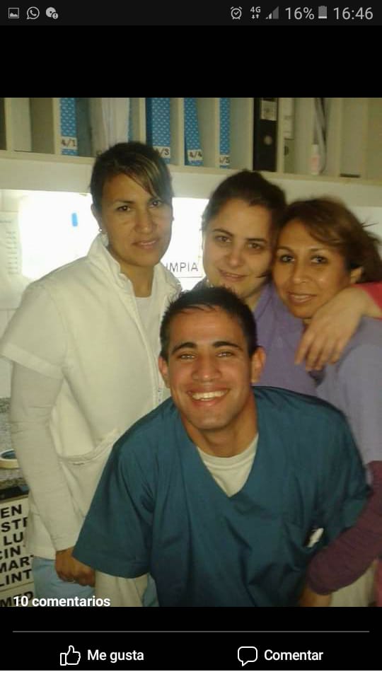 -Quise ser enfermera porque a mi papá le dio un ACV en 2001. Estuve mucho tiempo cn él en el hospital y cuando volví , el necesitó muchos cuidados. Tenía convulsiones. Le consiguió una beca en el Rita Bianchi y a raíz de los cuidados que implementé con él y me empezó a interesar. Luego cuidé a una paciente durante unos años. Hice un curso de auxiliar de enfermería en 2006. Y entonces me decidí a hacer el curso. Entré en el Rita Bianchi en 2008, me recibí y pasé tres meses en el Sanatorio Punilla, 1 año y unos meses en el Sayago y desde 2015 en el Domingo Funes.