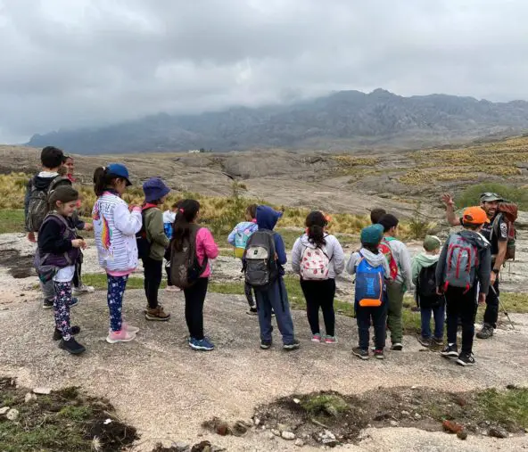 También la caminata contó con un momento de relajación frente al macizo al costado de un arroyo. Cinco minutos en total silencio y ninguno de los adultos presentes podía creer el respeto de los más chicos a lo que mostraba la naturaleza.