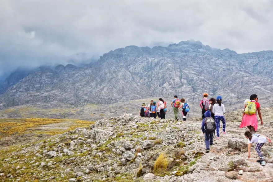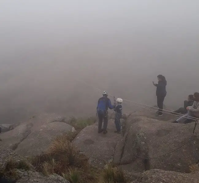 Sin embargo, con la buena energía del grupo y sus dos acompañantes (Matias Vivanco y Diego Molina, expertos en cuerdas y en la seguridad de la actividad principal) el aguacero se detuvo y con un poco de viento la roca se secó, lo que permitió que minutos más tarde, los «monitos» de la profe Pamela Quintela pudiesen escalar, por primera vez, en tres de las más de 500 vías que tienen Los Gigantes, la escuela de escalada más grande del país.