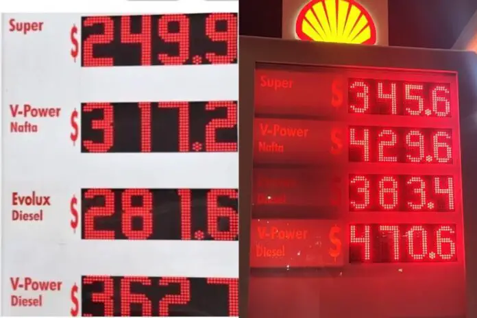 En Shell, la nafta Super cuesta $249.90 el litro en Buenos Aires, mientras que en Carlos Paz el mismo combustible tiene un valor $345.60. Son exactamente $95.70 de diferencia entre ambas ciudades, lo que en términos porcentuales representa el 38,4 por ciento.