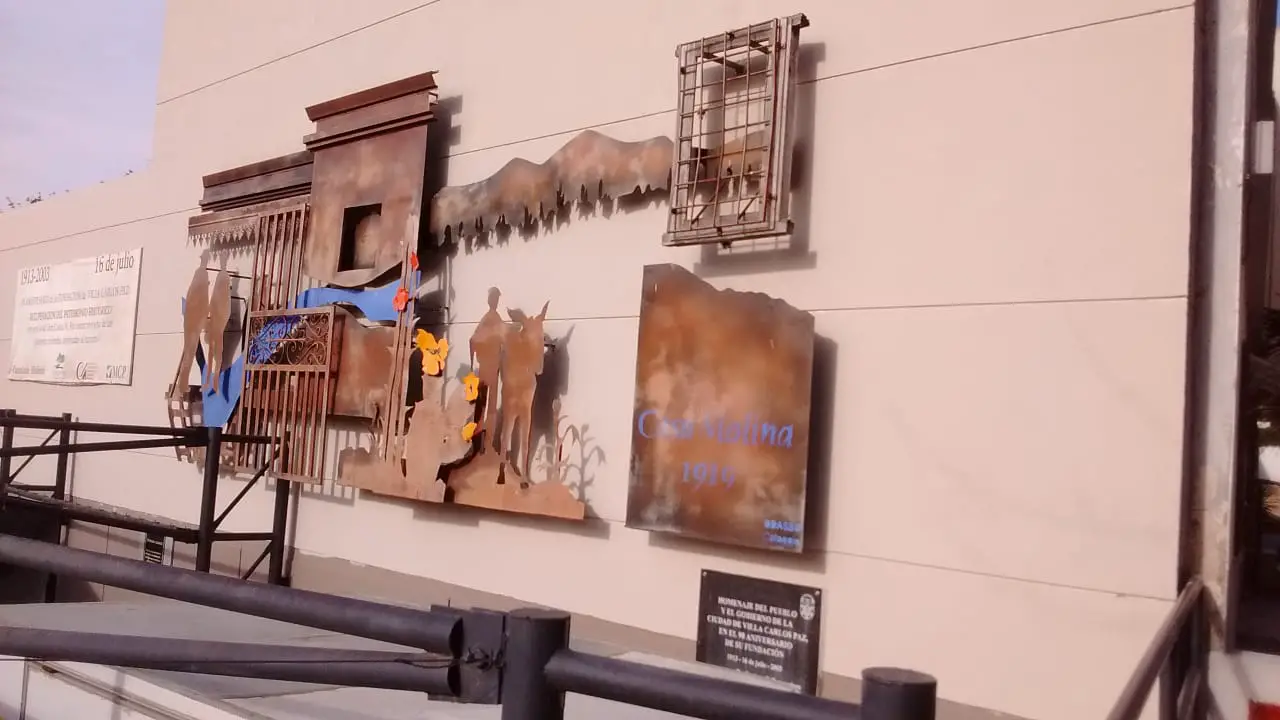 Este jueves se observaron movimientos en la playa de estacionamiento de la sucursal ubicada sobre avenida San Martín y Florida donde estaba montada una escultura de Alejandro Odasso en una de las paredes laterales. El friso representaba una de las primeras casas de Carlos Paz que fue derribada cuando se construyó la superficie comercial.
