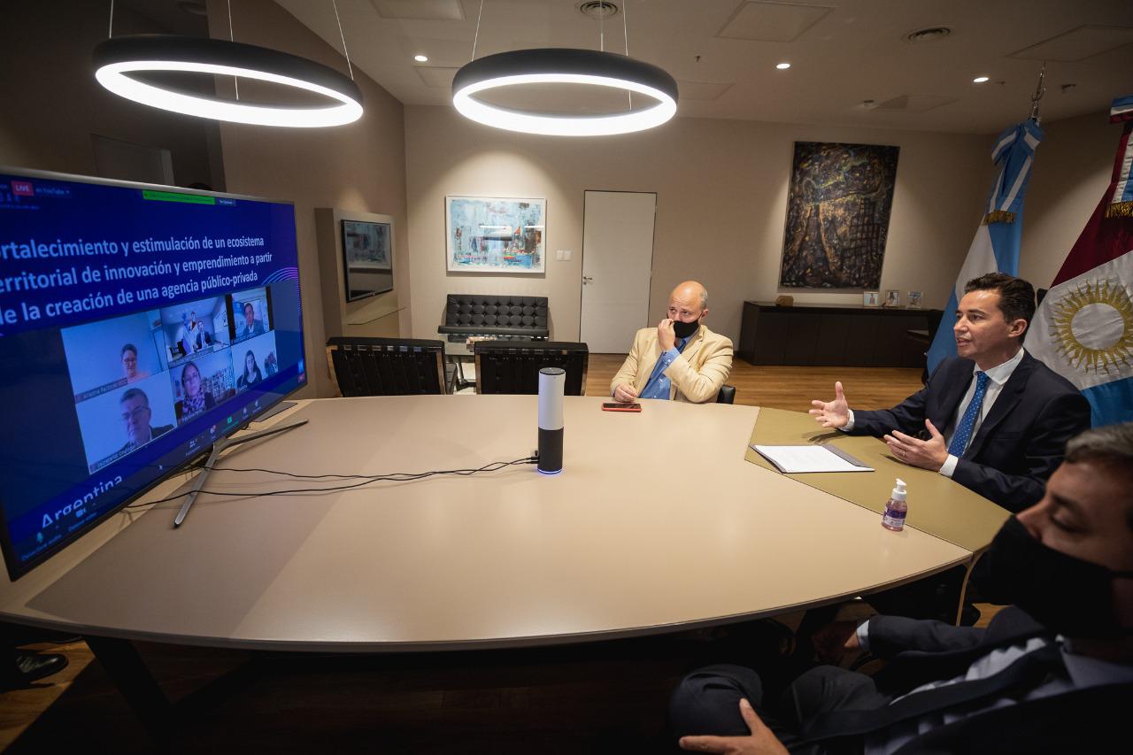 Durante la premiación, el vicegobernador estuvo acompañado por el ministro de Ciencia y Tecnología, Pablo de Chiara; Diego Casali, presidente de la Agencia Innovar y Emprender; David Urreta, subsecretario de Integración Regional y Relaciones Internacionales. El secretario de Integración Regional, Jorge Montoya, siguió la transmisión de manera virtual.