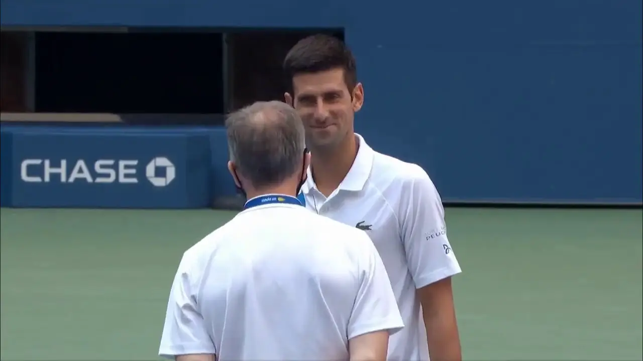 Djokovic no quiso golpear a la jueza, pero tuvo la mala fortuna de pegarle el pelotazo directamente en la cabeza lo que provocó que cayera al suelo.