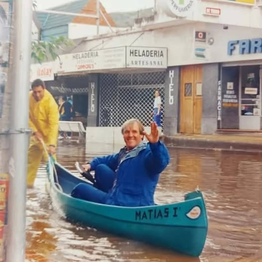 Se que este posteo va a poner triste a muchos ‘carlospazonzos’, por eso ponemos con Piti Eldor Bertorello, esta foto que te pinta en genio & figura: navegando por las calles de TU Villa Carlos Paz… en plena inumdación.