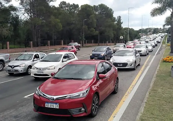 En el ingreso a Carlos Paz por avenida San Martín se armaron largas colas de vehículos en el primer semáforo de corte en el cruce con calle Medrano.