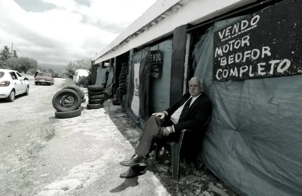 “El turista y mi clientela merecen que los reciba bien”. Me dice, cuando le destaco su estampa. Acto seguido, pasamos a hablar de las ofertas que tiene, que van desde reposeras y artículos de camping a gomas de ‘medio uso’… y ese motor Bedford del cartel. Toda una oferta… toda una ocasión.