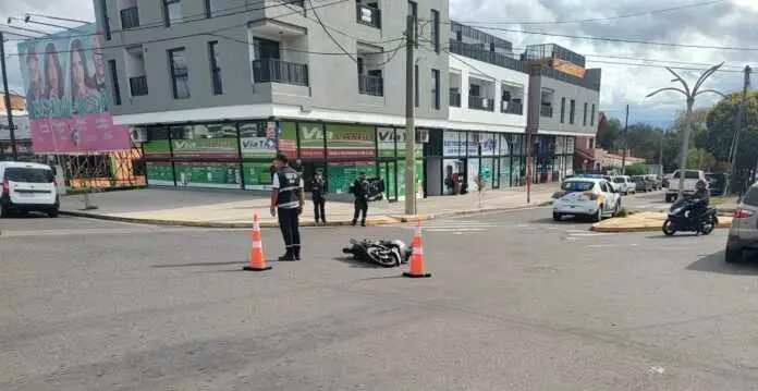 Apenas una hora después, a las 16:20, en la mano opuesta de la misma esquina (altura San Martín 1700), un joven de 25 años que manejaba una Brava Nevada 110cc impactó contra un Peugeot 208 conducido por una mujer de 27 años. Como consecuencia del choque, el motociclista sufrió fractura en una pierna y también fue derivado al hospital local.