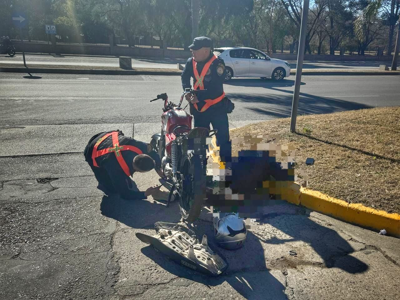 Según el informe policial, durante el control, el conductor de una motocicleta roja intentó huir a pie con el vehículo a su lado. Al perder el equilibrio, arrojó la moto al suelo y continuó su escape corriendo, pero fue interceptado a pocos metros por uno de los oficiales presentes. Simultáneamente, el acompañante levantó la motocicleta y también intentó huir, pero fue alcanzado por otro efectivo policial.