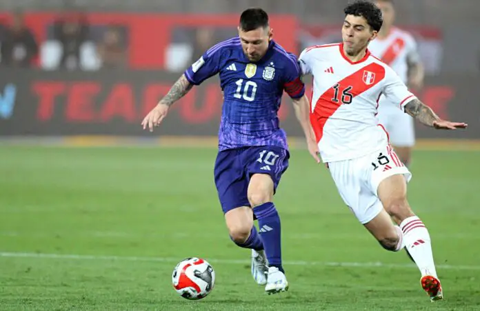 Perú encaró el partido como una final y pobló la mitad de la cancha para recuperar la pelota e intentar ataques directos sobre la valla de “Dibu” Martínez, el arquero récord de Argentina.