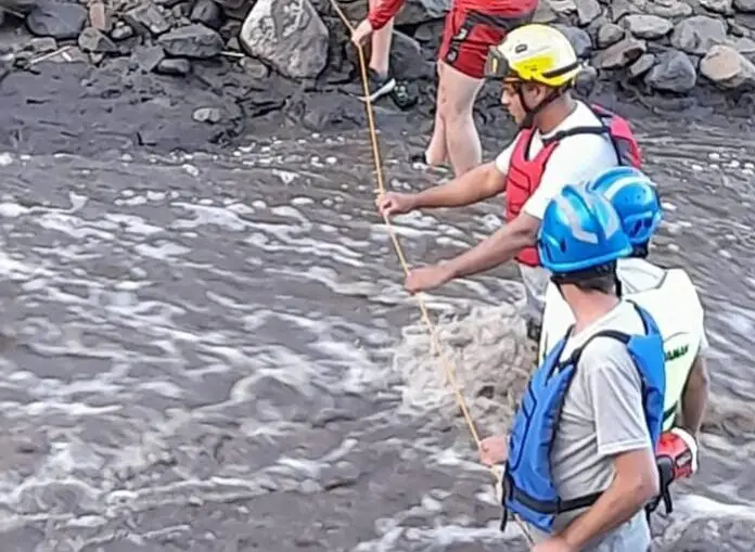 Este martes a la tarde, dos mujeres de 20 y 59 años tuvieron que ser rescatadas luego de quedar atrapadas por la creciente en el Dique La Quebrada ubicado en la localidad de Río Ceballos.