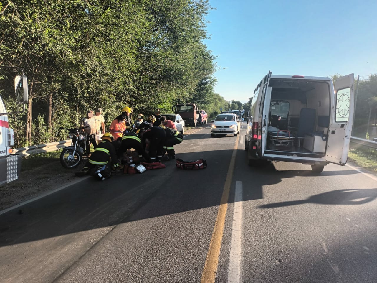 Ocurrió a la altura de San Roque, pasadas las 19, cuando un hombre y una mujer, de 35 y 30 años respectivamente, chocaron contra un Renault Kwid, quedando tendidos en la carpeta asfáltica.