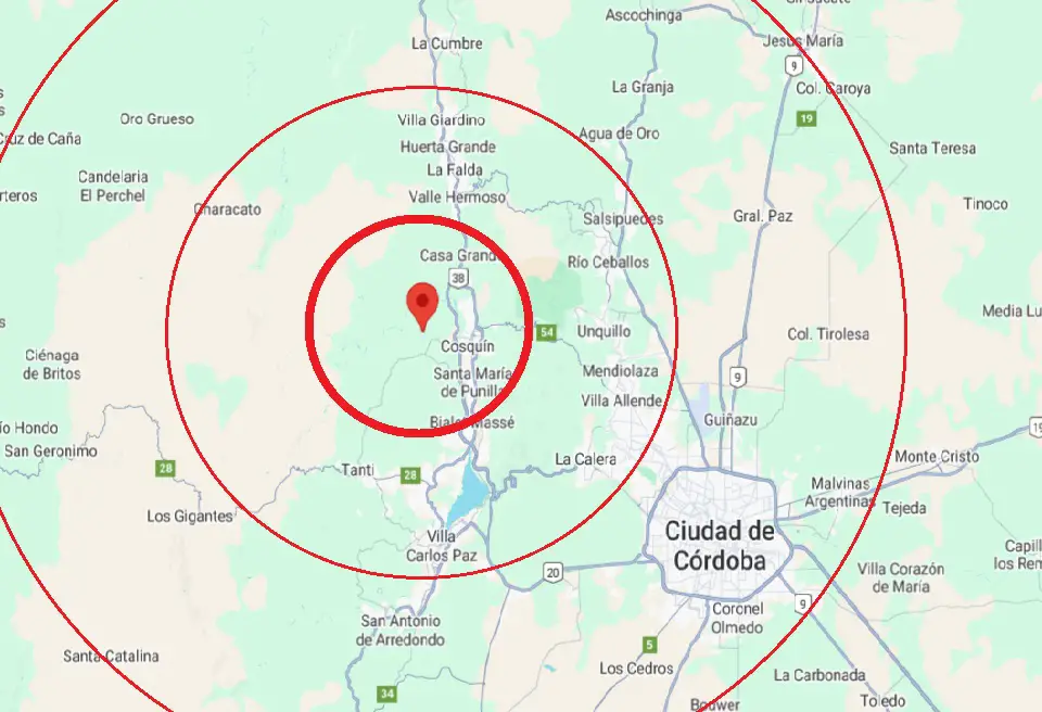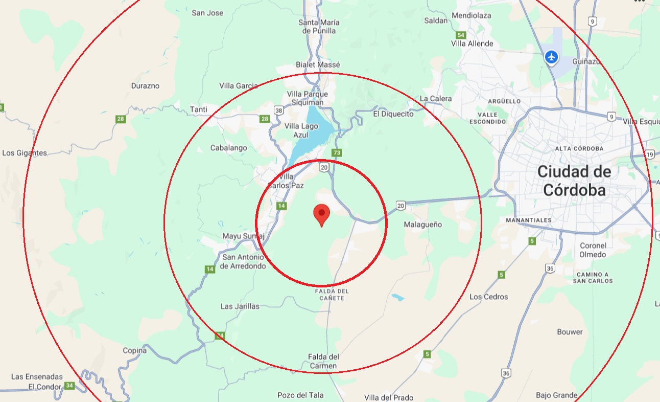 El primer sismo ocurrió el lunes a las 23:10, con un epicentro muy próximo a Villa San Nicolás: a 2 kilómetros al sur del barrio, 3 kilómetros al oeste del empalme Alta Gracia y 4,5 kilómetros al este de Playas de Oro, en Carlos Paz. Tuvo una magnitud de 2,6 y se produjo a una profundidad de 25 kilómetros.