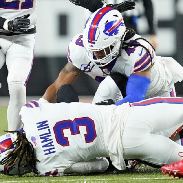 Damar Hamlin, de 24 años, estaba tacleando al receptor del equipo rival Tee Higgins en el primer cuarto del encuentro entre su equipo Buffalo Bills y el local Cincinatti Bengals, pero producto del golpe se encuentra en estado crítico luego de sufrir un paro cardíaco.