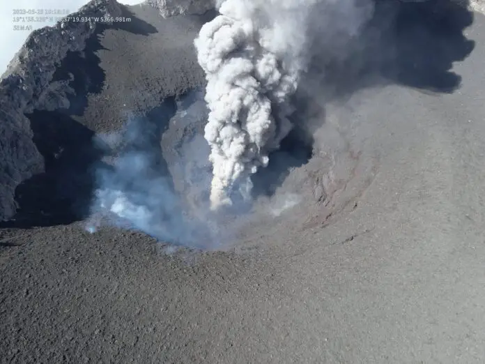 🟡🌋 Dron de la @SEMAR_mx sobrevuela el cráter del #Popocatépetl.