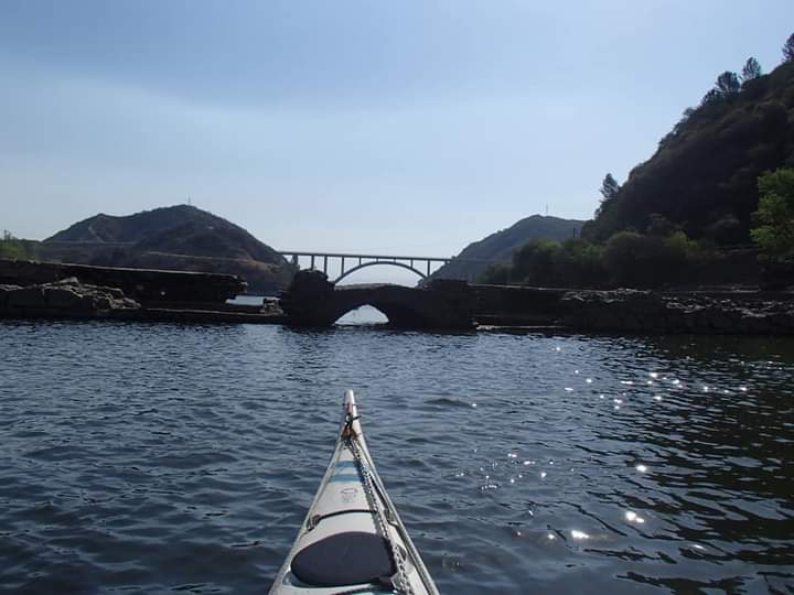 Atento a la poesía discepoliana que sentenciaba aquello de que el Siglo XX era problemático y febril, en esta foto, el querido profe de profes, el Carlitos Nieto, con su Kayak, inmortaliza 2 arcos que la ingeniería nos legó.