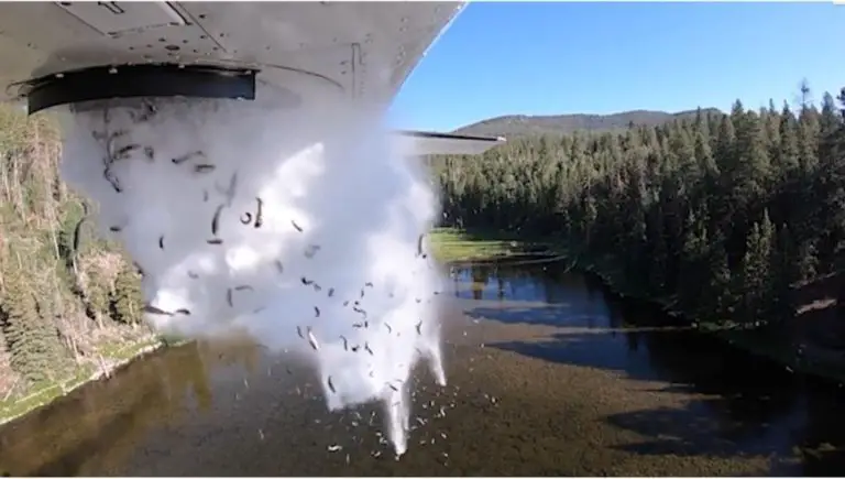 Utah, en Estados Unidos, posee 200 lagos montañosos, muchos de imposible acceso por vía terrestre, por lo que la División de Recursos para la Vida Silvestre del lugar, ideo un curioso método para repoblar la fauna acuática.