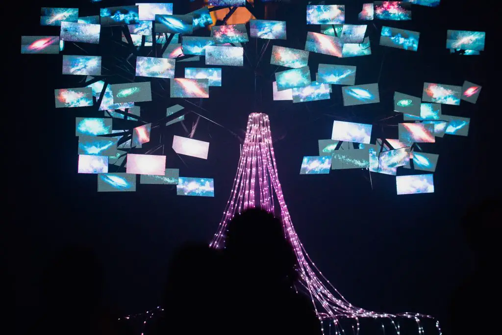 “El árbol de la vida” es una instalación que se centra en el lenguaje de las tecnopoéticas. El artista Luciano Colman describe la obra como una fachada que representa un ciclo vital, desde el Big Bang hasta los agujeros negros. El video de tres minutos pasa por los cinco elementos, la evolución darwiniana y concluye con los cuatro jinetes del apocalipsis.
