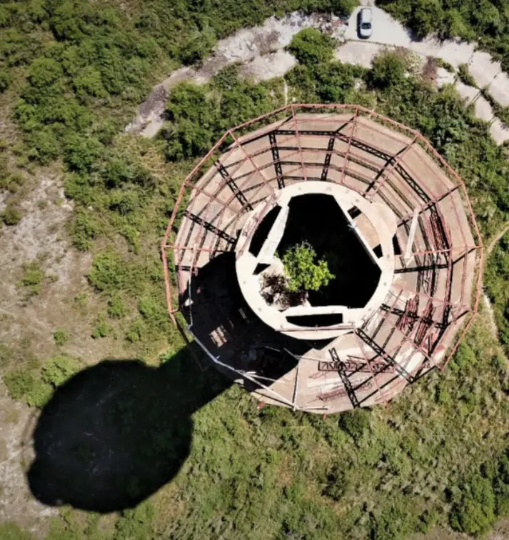 La toma cenital de #DronRamon con Capitán Lauti en la botonera, se obtiene desde unos 50 y pico de metros por sobre el cilindro mayor de Punilla: La Torre del Pato. En picada hacia la tierra.