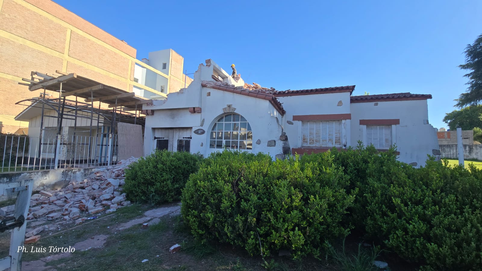 El sol trepa detrás de los árboles añosos de la Villa Suiza Argentina y LPP (La Piqueta del Progreso) cae, pesada, rítmica, efectiva, lapidaria… sobre los (también añosos) ladrillos de uno de los últimos chalecitos con firma ‘Lo Celso’ que nos estaban quedando.