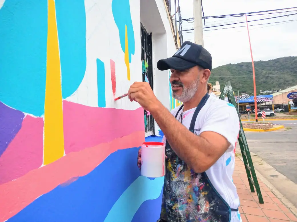 “Llegue a Carlos Paz para diseñar la imagen de un local comercial, vine un par de días, estuve haciendo otros murales y propietarios de otro negocio me invitaron a pintar otro, y así llegué a organizar esto”, destacó el artista Mario Lange, quien comentó que se puso muy feliz porque se acercó mucha gente a participar.
