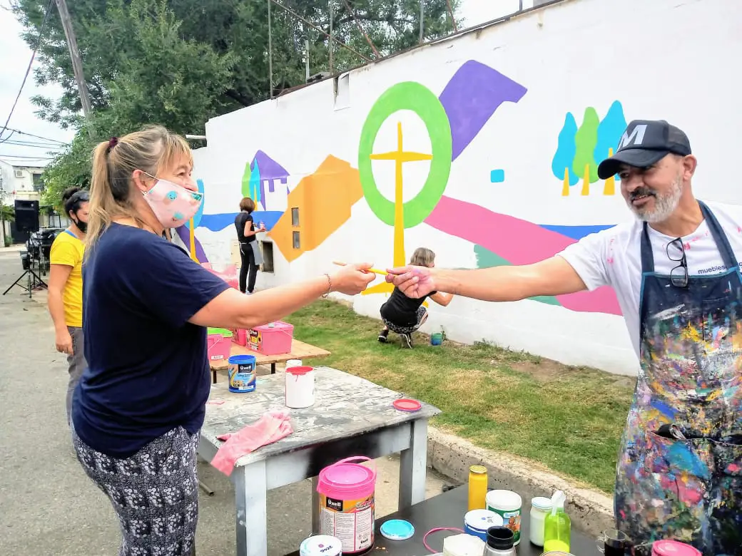 Desde que arrancó con esta movida artística a nivel federal, dijo que siempre pensó en hacer participar a la ciudadanía de los lugares a donde iba a pintar. “Mañana todos los que están presentes, cuando pasen por la obra van a decir que ellos lo hicieron, ni siquiera se van a acordar que lo diseñé yo; me encanta que la gente forme parte”.