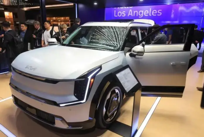 El EV9, un SUV de Kia eléctrico de tres filas con autonomía de más de 400 kilómetros, asegura ingresar a las casas