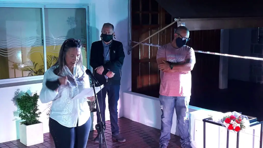 La doctora Olga Paz, el Taco Mena y el Gringo Landó, por la Institución, sus hijos Fabián, Ana Flavia y Luciano… y su hermana, la también doctora María José Herrou en cuadro, manteniendo ‘distancia comunicacional’, como dijo el doctor Luchessi que debería decirle de ahora en más, porque lo de ‘distancia social’ ya no va…