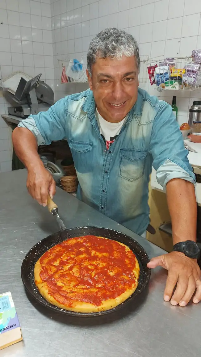 El Bicho Torno corta la pizza con menos pasión que cuando mete mano en un coche de carrera. Se nota a la legua.