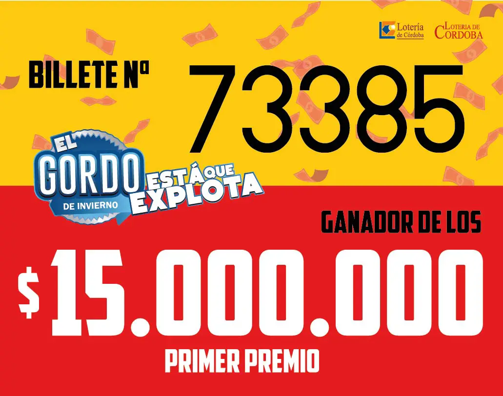 El primer premio del Gordo de Invierno 2021 correspondió al Nº 73385 y fue cantado a las 21:09 hs de este miércoles en el Salón de Actos de la Lotería de Córdoba, donde se llevó a cabo este tradicional sorteo extraordinario, transmitido en vivo por las plataformas de streaming a través de los diversos canales digitales de la Institución, su página web y redes sociales.