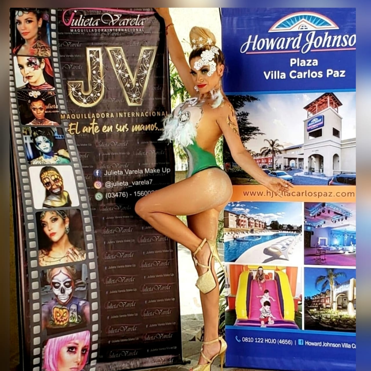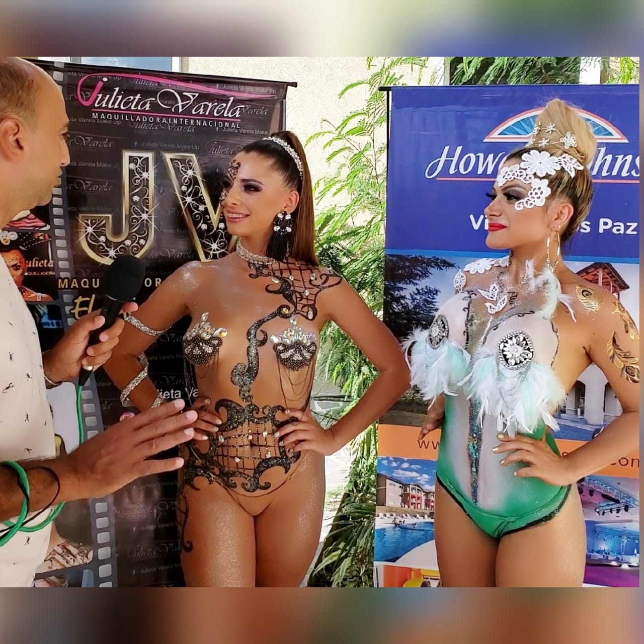 La artista Julieta Varela, maquilladora internacional, fue la encargada de hacer body painting en las vedettesVicky Alonso de La Revista de Cocodrilo y Mayra Ibáñez de Very Japy Show.